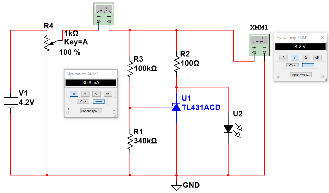 - если прибор работает от 4-х последовательных аккумуляторов по 1,2В, их суммарное напряжение 4,8В, можно использовать супервизор на 4,2В. Когда аккумуляторы разрядятся до 1,05В, он сработает.